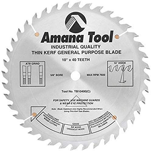 reddit Amana Tool - (TB10400) Carbide Tipped Thin Kerf General Purpose 10 Inch Dia x 40T ATB, 15 Deg, 5/8 Bore